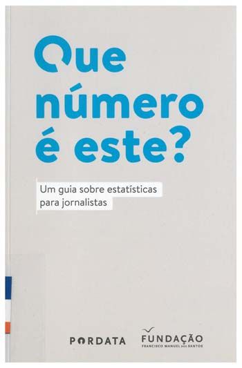 EDITOR: Fundação Francisco Manuel dos Santos ANO: 2017 RESUMO: Os números têm de ser interrogados. Sem isso, são apenas uma sucessão inerte de algarismos e uma potencial fonte de equívocos. Partindo de tal premissa, este livro apresenta, em 22 tópicos, questões essenciais para o bom uso das estatísticas nas notícias, auxiliando na sua interpretação e comunicação. Um guia prático, de fácil leitura e que se espera útil para o dia-a-dia dos jornalistas.